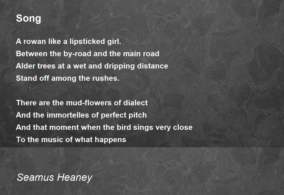 My name is Miriam Crozier and I feel like my life has always been immersed in music. As someone from Northern Ireland, I adore Seamus Heaney (I think there’s legislation somewhere about loving Heaney if you’re from here), and I have always loved the phrase in his poem Song, ‘the music of what happens’. It speaks to me about the rhythms and melodies of life in a way that makes total sense, so I’ve used it as a bouncing off point for what I intend to write about here, though in a flip of that phrase, this Substack is about all of the things that happen when music meets us, shapes us, puts a fire under us and brings us joy and meaning.
