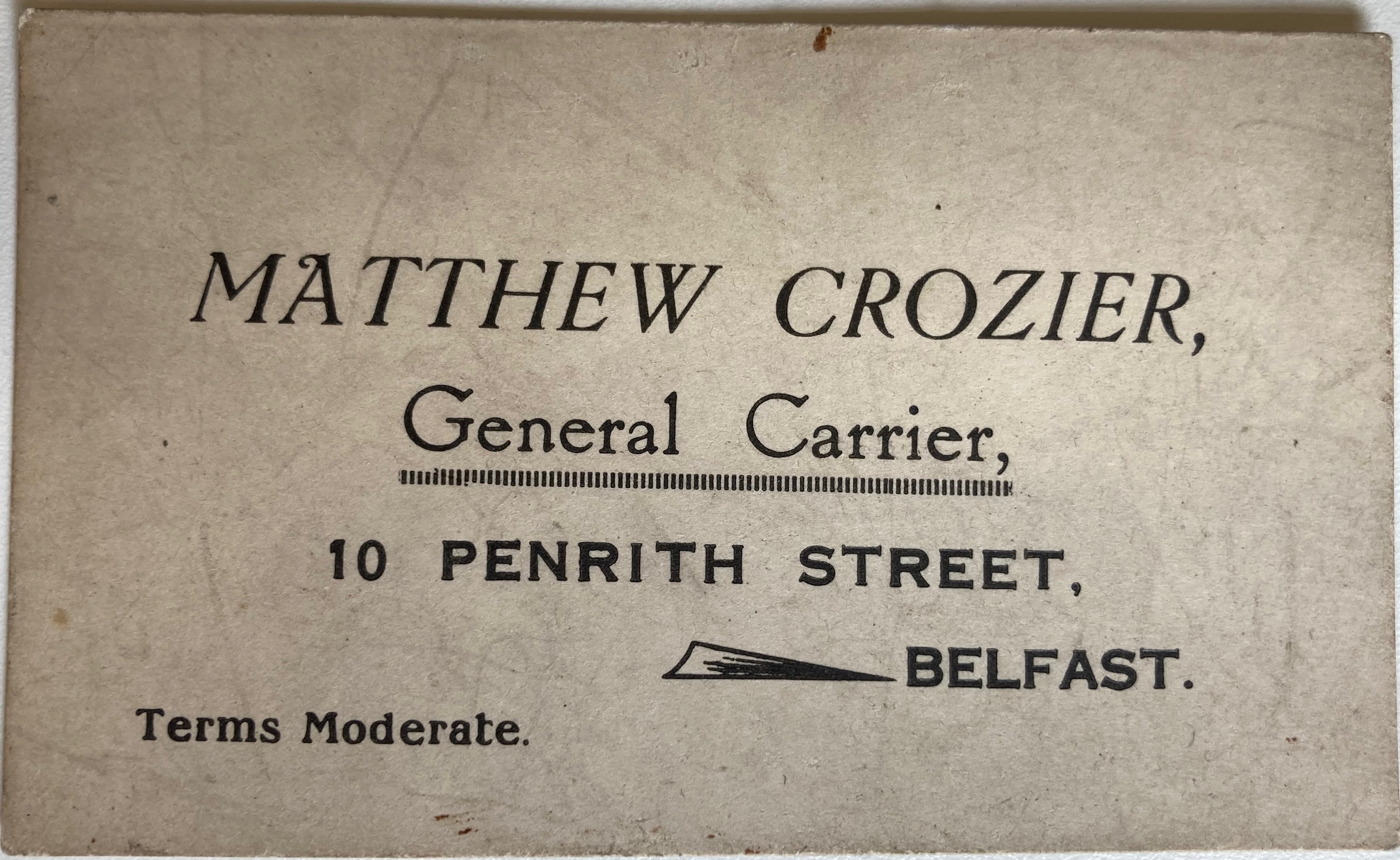 Granda lived a tough life. I know he worked for a time as a tent fitter for the circus, and I have a business card of his, bearing the ghost street address, from his time working as a ‘carrier’; tough physical labour. He kept pigs on a farm on the nearby Falls Road and buckets of scraps had to be carried up to feed them. His stint in the army in the Second World War saw him fight as a Desert Rat in North Africa and Malaysia. He came back from the war with what I am convinced we’d now diagnose as PTSD, which made for a very unhappy home. My Grandmother had her own WWII trauma, having worked as a nurse during both the Belfast Blitz and in London, so neither was in a good place to care for a child and my Dad’s upbringing was physically tough and full of neglect - in fact, he was really brought up by surrounding relatives who were appalled and ready to care where his parents weren’t. And Granda drank. We heard stories of his behaviour at his wake that were hilarious in the telling, but on reflection, I see a man fighting that PTSD and using one of the old-as-time escapes on offer, alcohol.